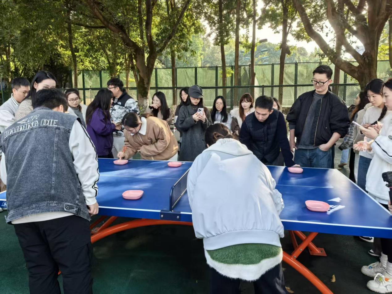 “夹弹珠”比赛现场则安静中透着紧张。选手们需用光滑的筷子将盘子里的弹珠快速夹到另一个容器中。看似简单的任务,却极考验手部的稳定性和强大的心理素质。有的同学手法娴熟,弹珠应声入碗,快如闪电;有的则与滑溜的弹珠“斗智斗勇”,夹起又滑落,急得满头大汗。这场“指尖上的较量”完美诠释了研究生们不仅在学术上精益求精,在游戏中也力求精准的执着精神。
