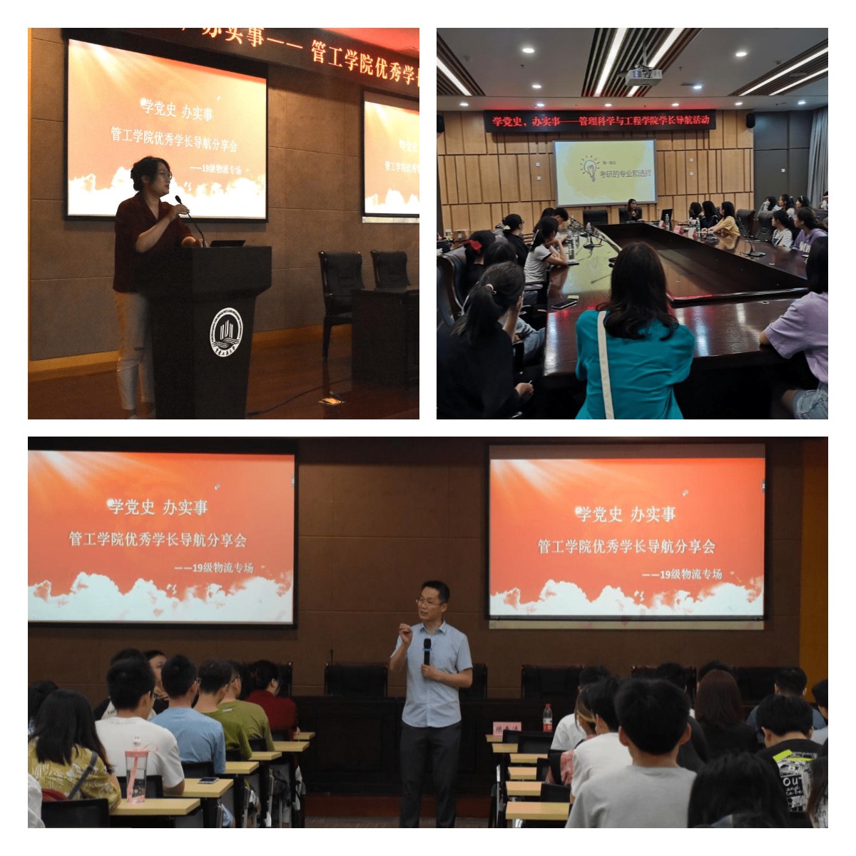在问诊把脉学生需求后,学院组织学生班团开展多场“学长导航”活动,邀请到今年毕业的学生党员为低年级学弟学妹讲考研、讲学业规划、讲科创比赛、讲求职技巧等等,深受学生欢迎。学院工程管理系总结办学经验,启动实施校友导航卓越计划项目,助力学生成长成才。