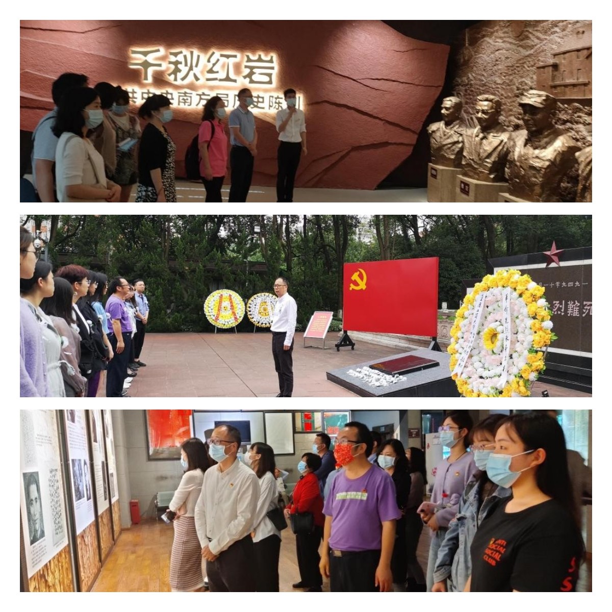 5月14日、5月20日、5月27日,学院分批组织了师生党员、毕业生党员到红岩革命纪念馆、红岩魂教育基地开展党史学习教育实践活动,全体党员身临其境体验感受革命先烈、老一辈无产阶级革命家为新中国的建立做出的伟大贡献,他们的英雄事迹激励我们把初心铭记在心,把责任扛在肩上。