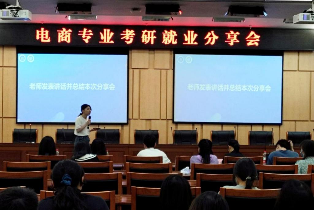 为切实帮助青年学生做好学业和职业规划,扎实开展“我为群众办实事”活动,管理科学与工程学院学生支部与小云雀电子商务社团于4月27日在新图书馆第一会议室联合开展考研就业分享活动。