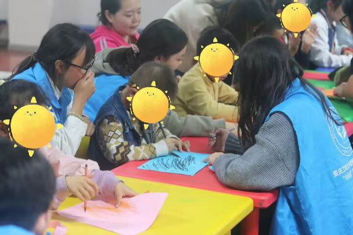 下午一点,志愿者们到达活动场地,完成准备工作。活动于14:00开始,首先,由主持人开场致词并介绍活动流程,鼓励小朋友们积极参与活动中来。然后,由志愿者们和小朋友们玩一些适合幼龄儿童的益智小游戏如《配对小图案》、《吹泡泡》等,同时还发放奖品,从而满足了小朋友们的成就感,也树立了小朋友的自信。其次,志愿者教小朋友们绘画、唱儿歌,为他们提供更多正向的情绪价值,给予小朋友们更多展示自我的机会,激发他们的兴趣。整个活动进行有条不紊,志愿者和小朋友们相处和谐,现场氛围十分融洽。最后以志愿者们与小朋友们的合照定格美好的下午,本次活动也落下帷幕。
