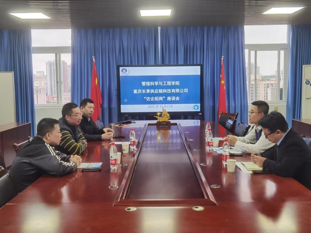 2023年11月13日下午,重庆长享供应链科技有限公司副总经理郭晓辉带领该公司综合部主管杨丹丹、数字风控经理王鹏飞等一行莅临ok138cn太阳集团,太阳集团tyc9728,44118太阳成城集团进行“访企拓岗”交流,ok138cn太阳集团李华平书记、詹川副院长以及物流管理系张军主任、物流管理专业大四辅导员邓诗语老师等参加了交流会。