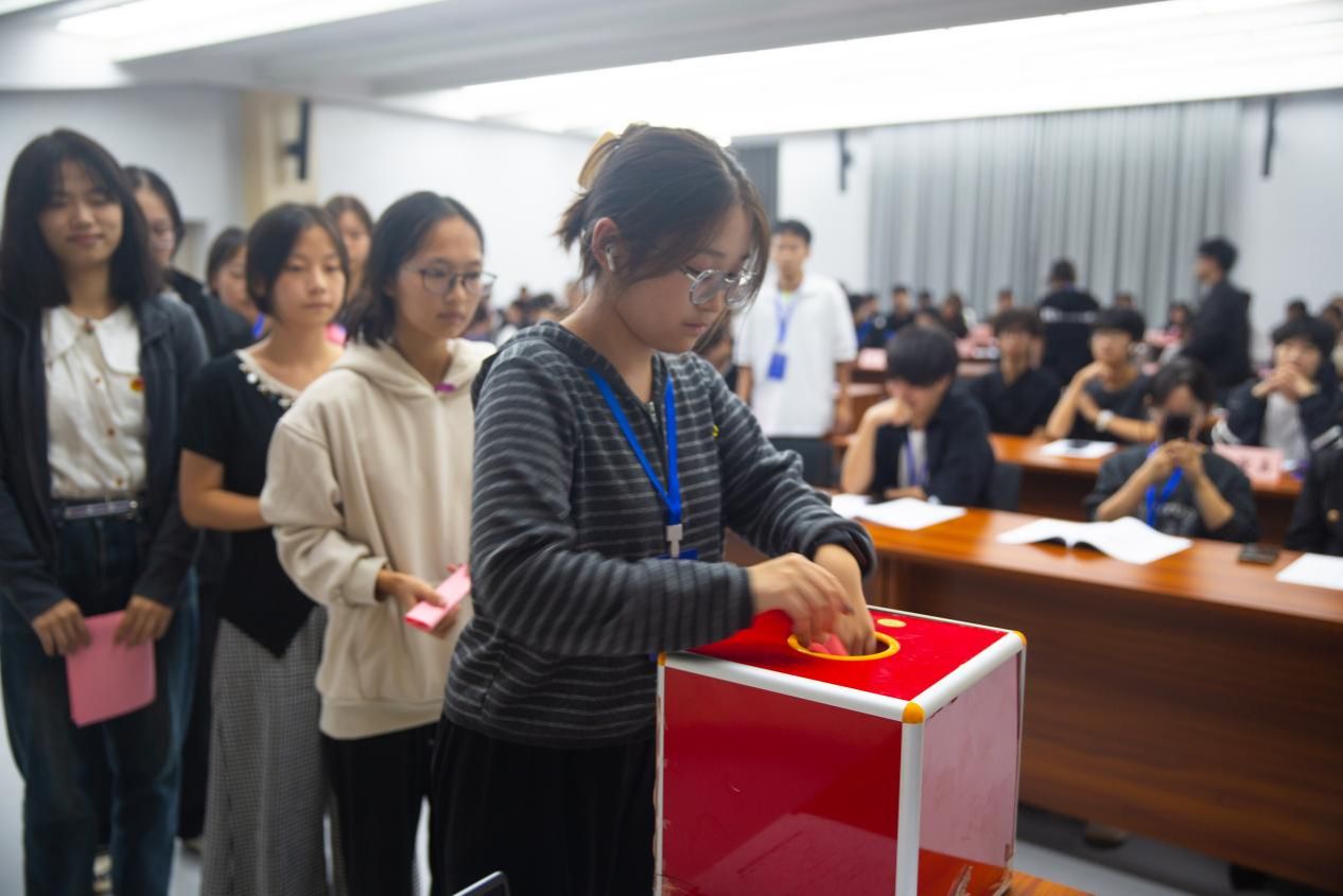 最后,大会以无记名投票的形式,民主选举产生了学院第六届学生会主席团。选举产生王睿涵、英嘉文淇、谢思成当选新一届学院学生会主席团成员。最后全体参会人员起立合唱中国共青团团歌,第六次次学生代表大会圆满结束。