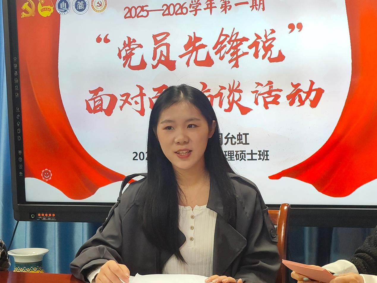 最后,周允虹以“不忘初心,砥砺前行”寄语学弟学妹:无论选择考研、就业还是深造,需明确目标、持续努力,避免盲目比较,同时,要关注国家大事与各领域前沿,以青春朝气探索成长,用党员担当扛起责任,在服务社会、奉献人民中让青春闪光。