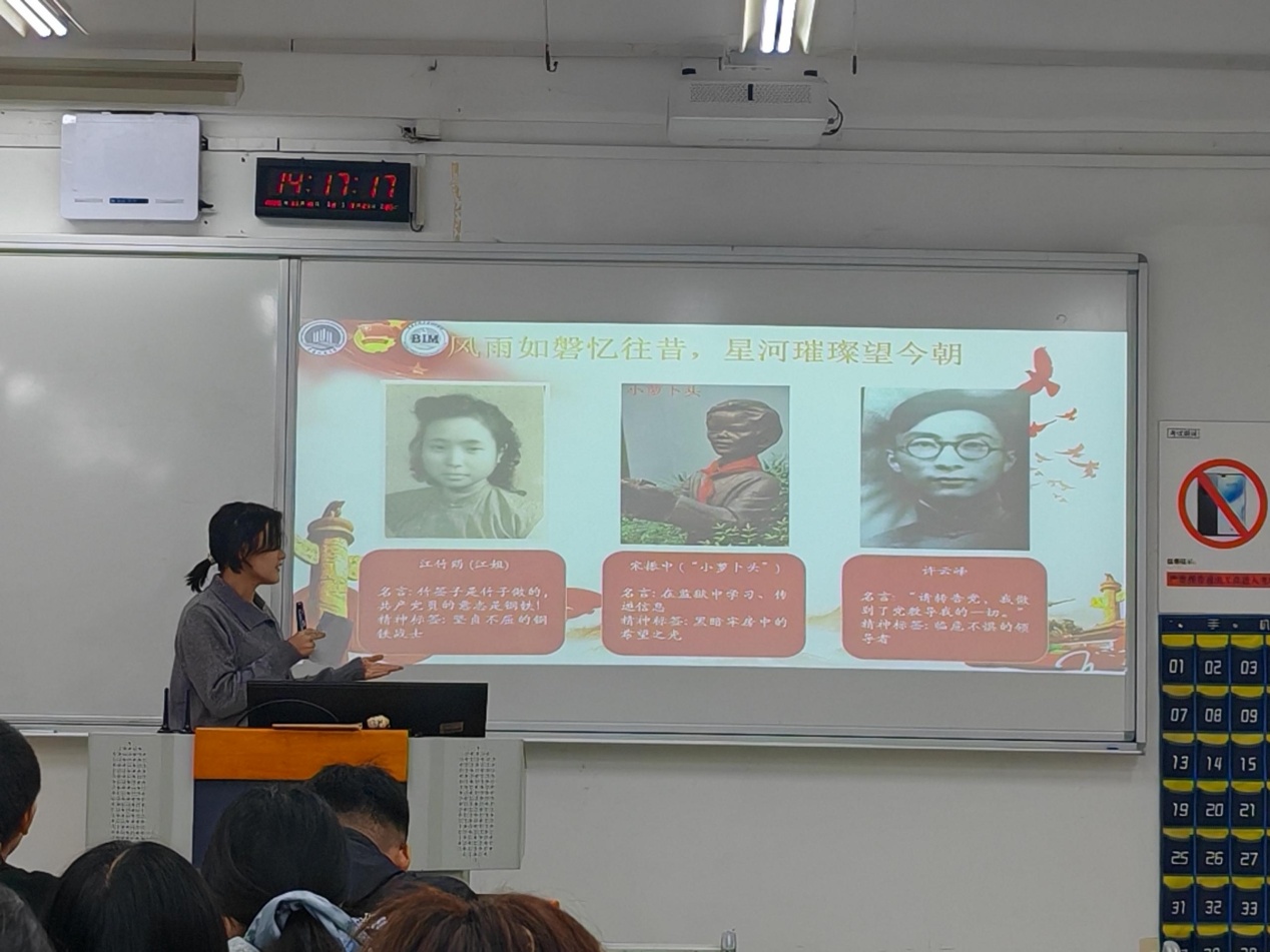 随后,主持人带领着同学们一起回看革命历史,体会老一辈无产阶级革命、共产党人和革命志士坚如磐石的理想信念和不折不挠的凛然斗志,点燃自身斗志,体味红岩精神,通过了解革命烈士,深化同学们对中华民族历史与文化的认知,强化民族自豪感与归属感。
