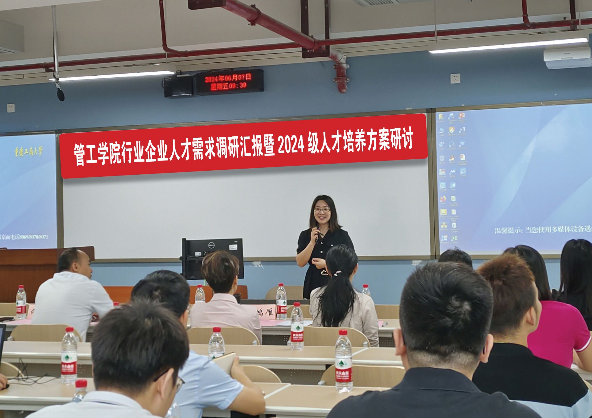 为积极顺应全球科技革命与产业变革的新趋势、新动态和新标准,进一步凸显专业特色,明确人才培养目标,更科学地制定2024级人才培养方案,ok138cn太阳集团于2024年6月7日在涵智楼905教室隆重召开了“行业企业人才需求调研汇报暨2024级人才培养方案修订研讨”。学校教务处韦晓兰副处长、重庆理工大学管理学院院长代应教授、重庆大学管理科学与房地产学院副院长向鹏成教授、重庆大学经济与工商管理学院徐鸿雁教授、西南政法大学商学院营销与电子商务专业负责人沈娜利副教授、浪潮国际重庆区副总经理吴严、顺丰速运重庆有限公司人力资源总监王自鹏、菲欧坦(重庆)数据科技有限公司总经理罗挺、菲欧坦(重庆)数据科技有限公司跨境电商孵化器总监刘妍兰、 重庆彰咏红建设工程咨询有限公司董事长张永红,以及学院全体专任教师参加了会议。