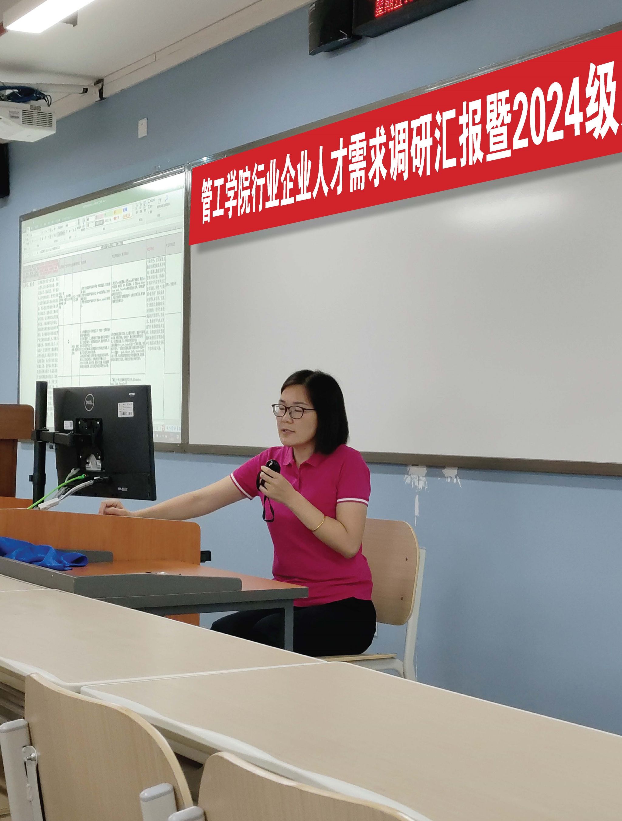 电子商务系系主任唐国峰教授详细介绍了电子商务专业的学科交叉融合特色,特别是商业管理与信息技术的结合,如何培养出具备经济管理思维和数字经济创新能力的专业人才。他强调,为顺应数字经济发展趋势,专业将推行团队导师制,并将理论教学与实践、科研与教学紧密结合。电子商务系系副主任文悦副教授向介绍了当前的培养方案及课程设置情况。