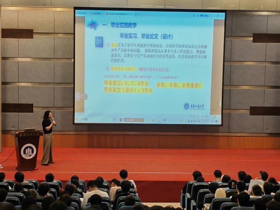 接着,学院教务办胡恋老师,就毕业实践教学的注意事项及重要时间节点进行了详细说明。