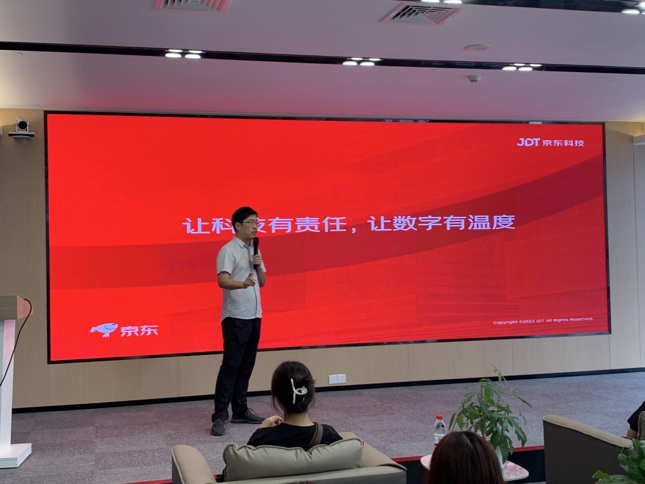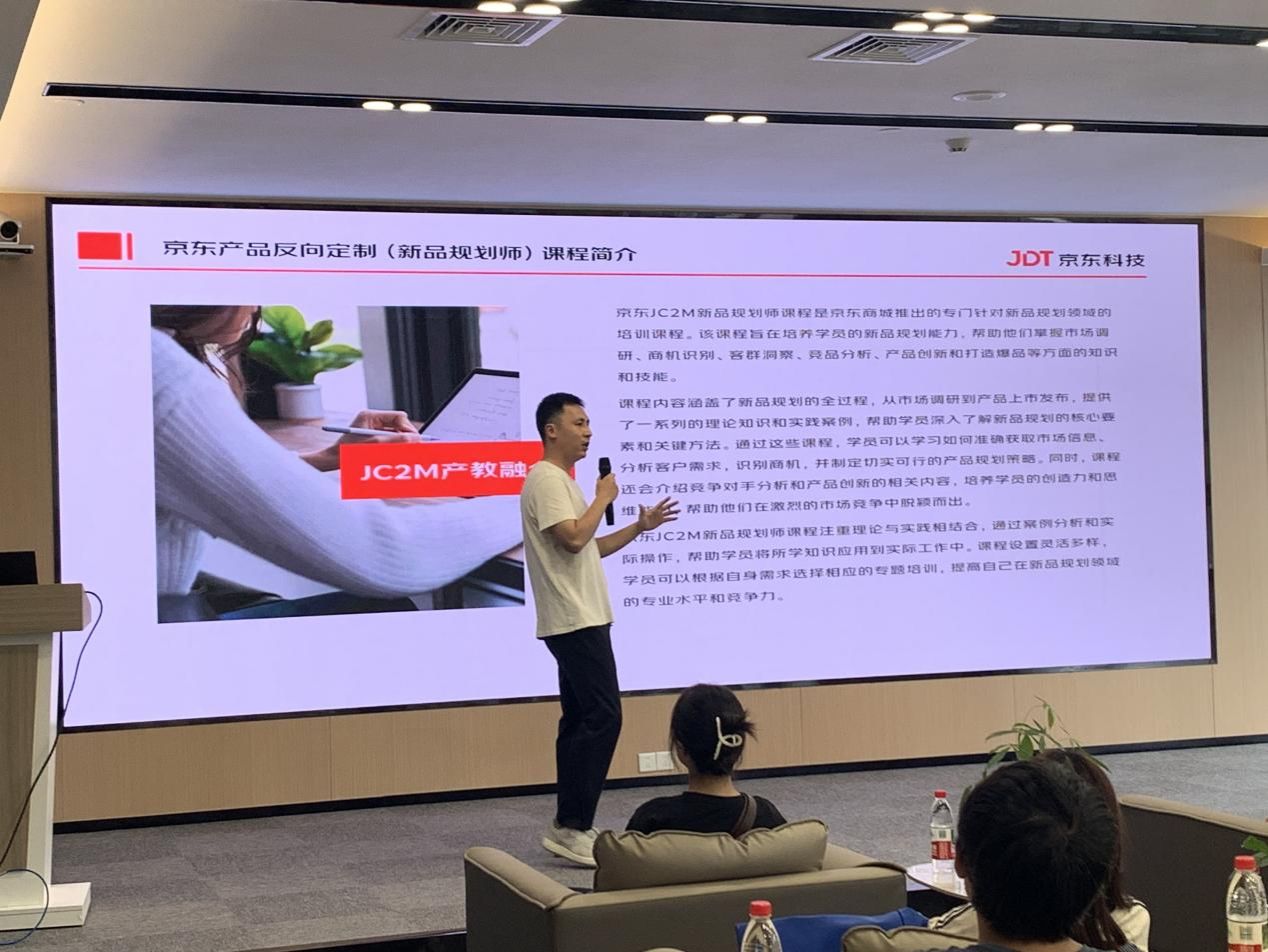 随后,京东科技的徐毅经理为同学们带来了一场主题为《大数据时代新质人才培养服务方案》的专题分享。徐经理结合京东科技在大数据、人工智能等领域的技术沉淀和行业实践,深入阐述了面向数字经济新时代,高校和企业如何协同培养具备“新质生产力”的高素质专业人才。他重点介绍了该方案如何有效推动产学研深度融合,并强调了通过校企共建平台,实现教育链、人才链与产业链、创新链的有机衔接,为学生指明了未来职业发展和核心能力培养的方向。