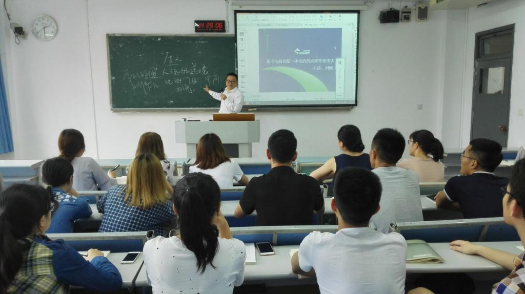 为拓展学员对于电子商务与物流发展的认识及视野,学院特聘请重庆乐邮送供应链管理有限公司总经理刘刚先生为我院“医流巴巴卓越电子商务人才培养实验班”授课,讲授《基于电商仓配一体化的供应链管理浅谈》。