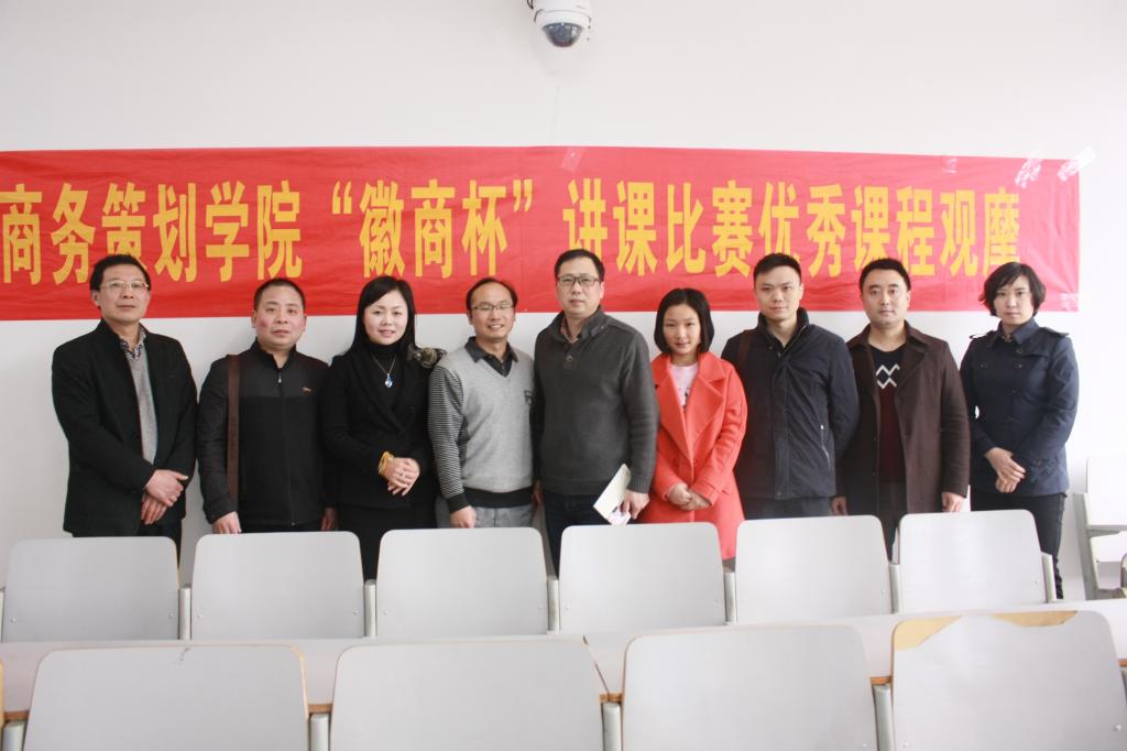 2016年3月16日上午,商务策划学院“徽商杯”讲课比赛优秀课程观摩继续进行。本周观摩的是电子商务系刘四青老师和孟伟老师的课程,学院党总支邓德敏书记、王燕副院长、电子商务专任教师、学院教学督导以及教务办老师参加了本次观摩。