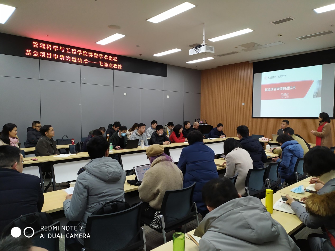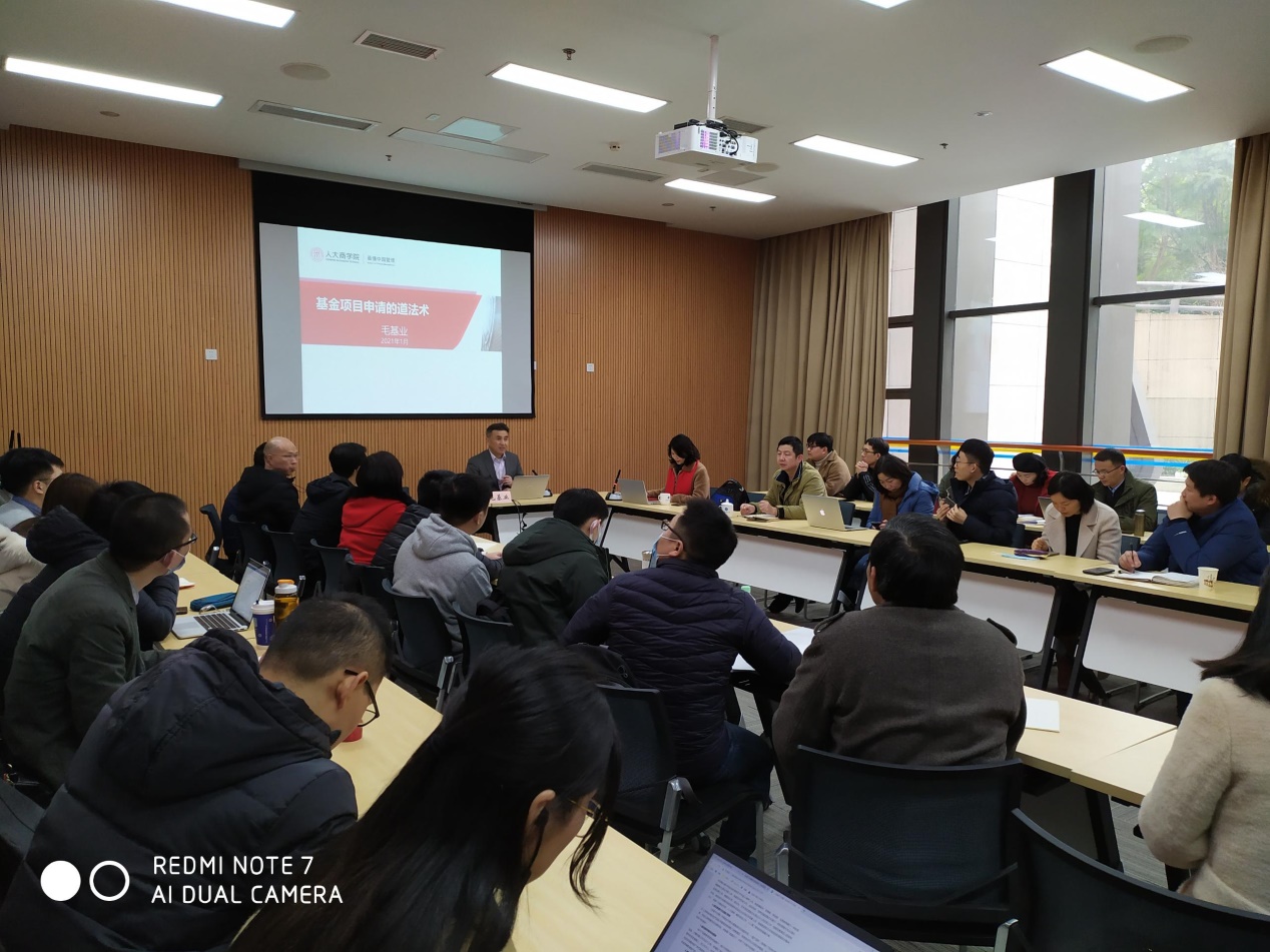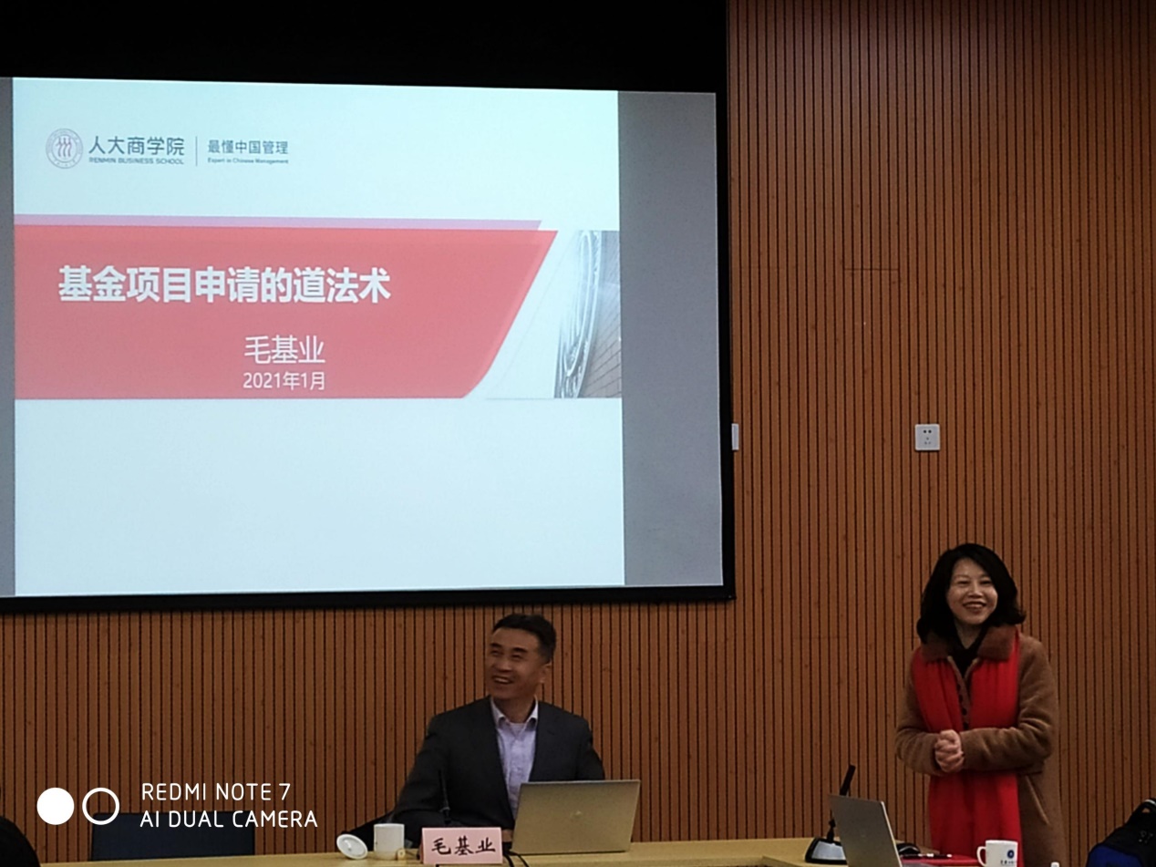 为更好助力老师们申报2021国家两金项目,ok138cn太阳集团有幸邀请中国人民大学商学院院长、博士生导师、国家自然科学基金委员会专家评审组成员,国家社科基金会评专家--毛基业教授于2021年1月4日下午在图书馆第二会议室举行了“基金项目申请的道法术”学术讲座,来自ok138cn太阳集团、工商管理学院、国合基地、数学与统计学院等共计50名老师参加了讲座。