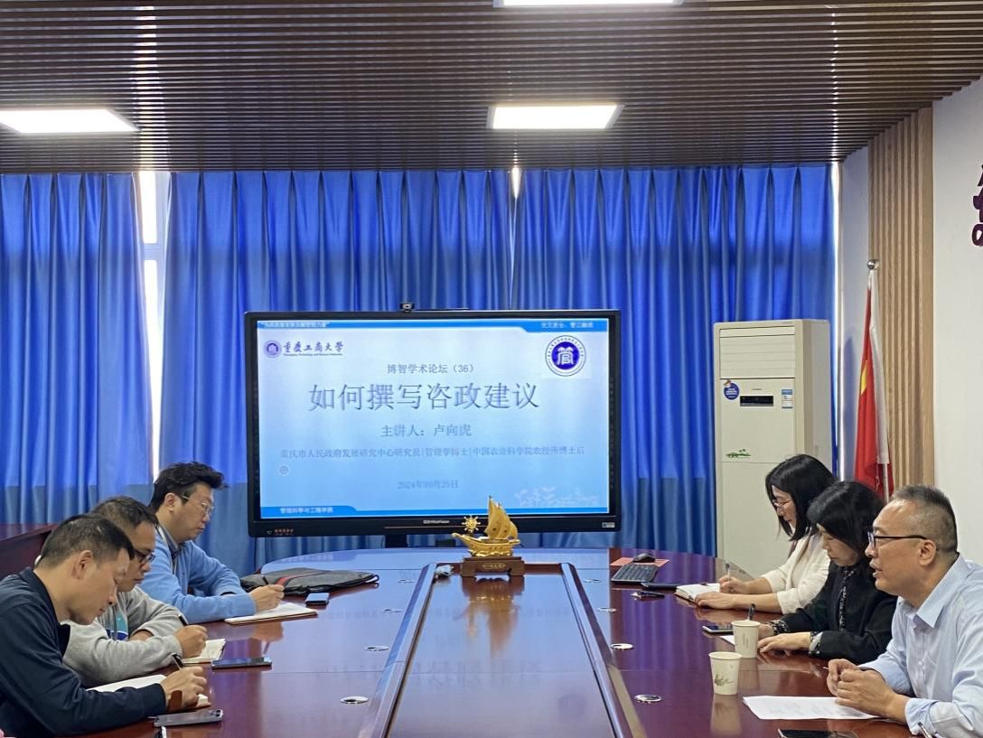 2024年10月25日上午,ok138cn太阳集团第19期博智学术论坛在启智楼709成功举办。本期论坛特邀请重庆市人民政府发展研究中心智库建设处卢向虎处长做主讲嘉宾。学院黄钟仪院长、陈久梅副院长、梅中亚副主任、张德海教授、李志国教授、李红霞教授、李树良教授、曹策俊副教授、石建力副教授、俞鲲副教授、李海南副教授、何鹏副教授、袁俊高级工程师参加了此次论坛。