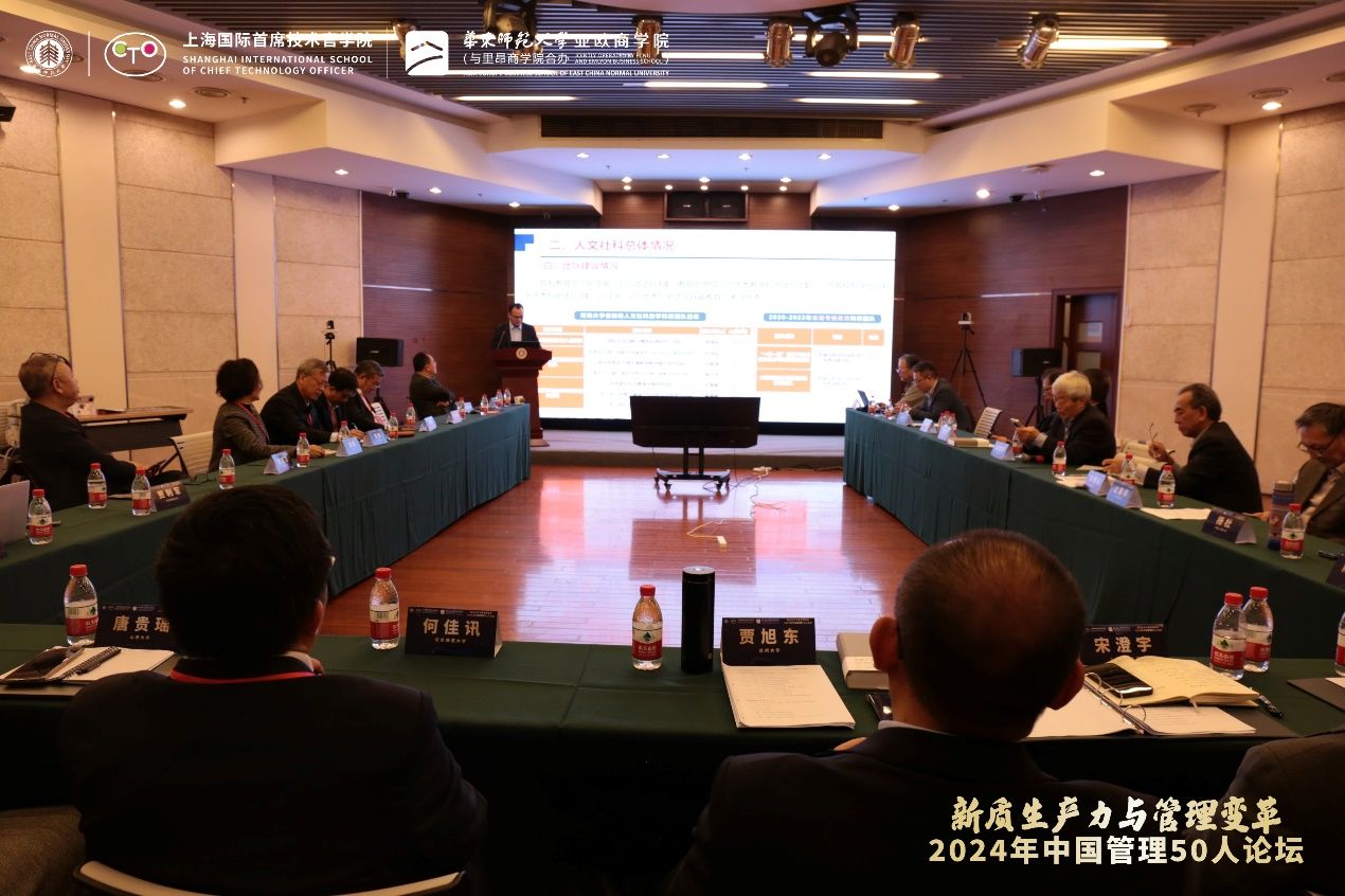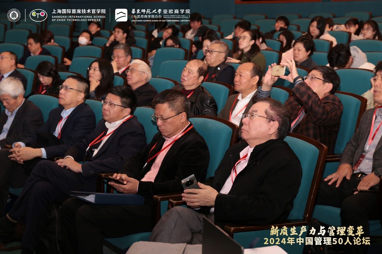 2024年11月22日,由华东师范大学主办、上海国际首席技术官学院和亚欧商学院联合承办的《2024中国管理“50”人论坛》在上海华东师大普陀校区逸夫楼学术交流中心盛大开幕。本次论坛以“新质生产力与管理变革”为主题,希望在此方面形成中国管理学界的思想共识,以推动中国管理学科的新发展和新行动。会议由席酉民教授、魏江教授主持。北京大学王其文教授、清华大学陈国权教授与雷家骕教授、上海财大徐飞教授、浙江财经大学魏江教授、吉林大学蔡莉教授、上海交通大学颜世富教授、我院院长黄钟仪教授等36位全国资深教授参加。