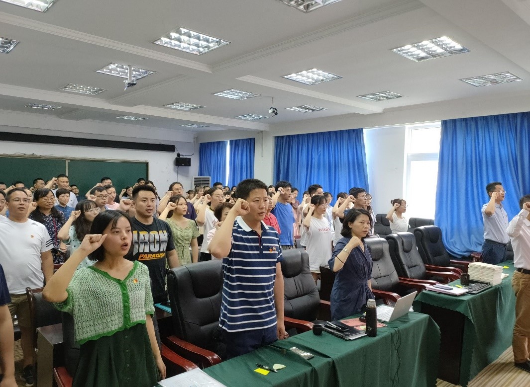 2021年6月30日星期三下午14:30,ok138cn太阳集团党委在启智楼707会议室开展喜迎中国共产党成立一百周年“七个一”主题党日。全院师生党员参加了本次活动。