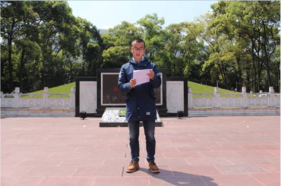 学生党员代表王柯发言。他说到,清明节是我们中华民族祭奠祖先的传统节日,值此清明节前夕,我们在这里祭奠伟大的革命先烈们,不但是为了缅怀革命先烈抛头颅、洒热血,建立新中国的的丰功伟绩;也是为了鞭策自己,做合格党员,珍惜这来之不易的美好生活,不仅让全体学生党员更深刻理解到革命烈士英勇牺牲和无私奉献的伟大精神,同时代表全体学生党员表示要学习革命先烈的大无畏革命精神,艰苦奋斗,心系群众,努力学习,在学习和生活上严格要求自己,敢于争先,发挥先锋带头作用,为实现中华民族伟大复兴的中国梦而不懈奋斗!