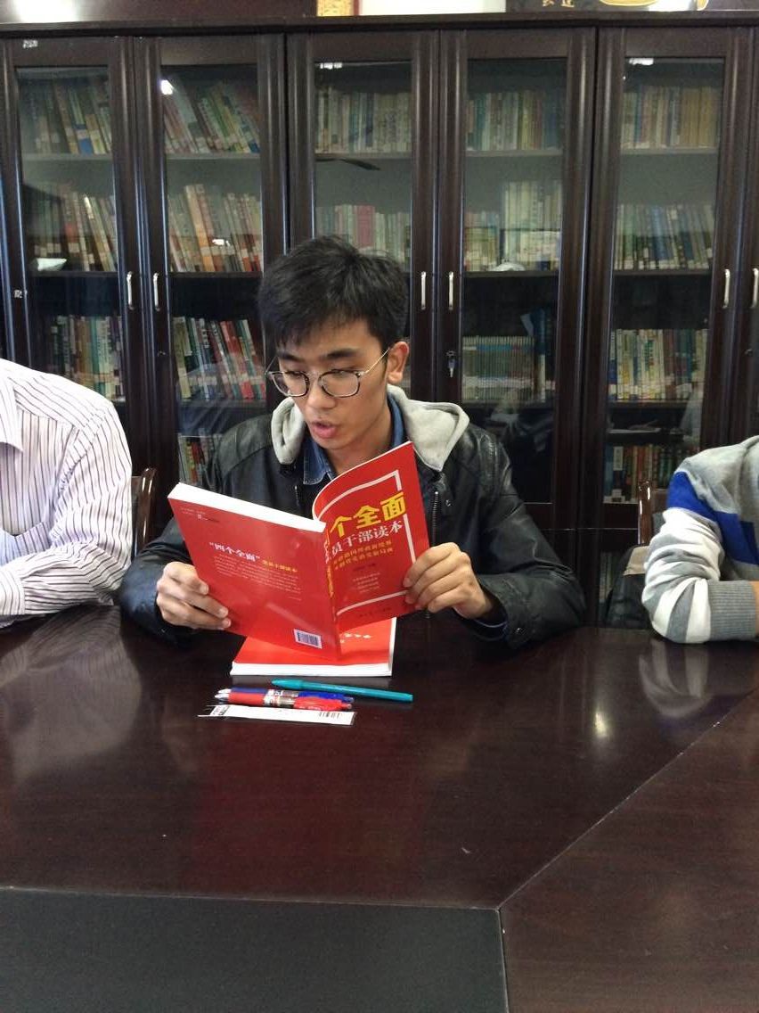 会上首先大家集体学习、讨论了习近平主席提出的“四个全面”治国理政,管党治党的讲话和精神。参加会议的学生党员和入党积极分子都表示很受习主席讲话的鼓舞,并且对中华名族的伟大复兴充满了期待。会上各位学生党员的讨论也很积极,热烈。樊少华同志向在座党员介绍和传达了“四个全面”讲话精神,所谓“四个全面” 即全面建成小康社会、全面深化改革、全面依法治国、全面从严治党。在新年伊始奏响了当代中国的最强音,共同托起实现“两个一百年”的奋斗目标。批评与自我批评是民主生活会的主要内容之一,也是自我反思、自我总结和自我提升的过程。在此次民主生活会,各位党员同学积极展开批评与自我批评的讨论,并进行深刻的自我反省。姜慧同志说,“作为一名学生党员,自己没有最大程度发挥党员的先锋模范作用,没有最大程度地带动身边的同学进步,感觉自己还不是一名称职的党员”;虞佳炜同志说,“自己由预备党员转为正式党员后,感觉自己在思想、工作等各方面都松懈下来,没有发挥先锋模范作用,帮助班级同学积极就业”。