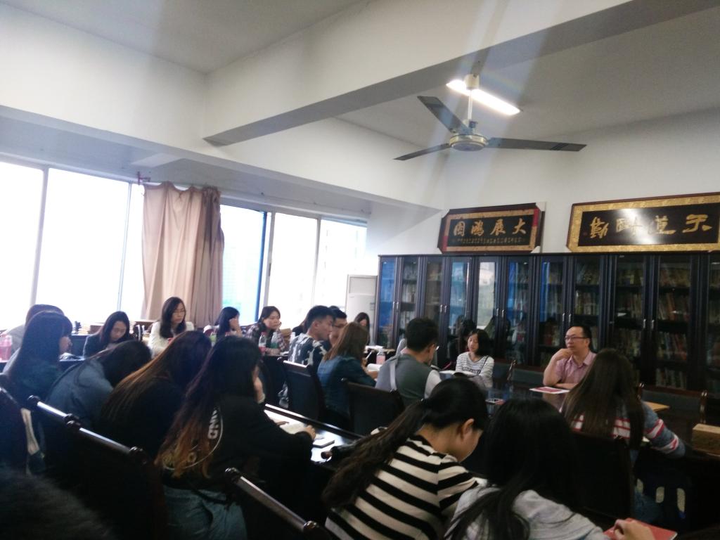 2016年5月19日晚上,商务策划学院党总支副书记叶海林组织学院全体学生党员开展以“学党章党规、学系列讲话,做合格党员”为主题的学习教育活动,并给学生党员讲了题为《学习党章,强化全心全意为人民服务的意识》的党课。
