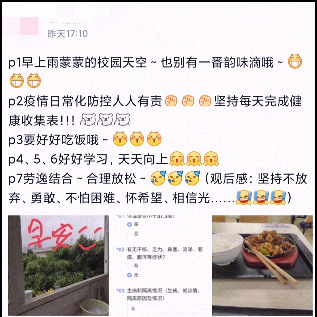 生命安全重于泰山,校园管理并未封闭生活。在疫情严峻的当下,同学们要秉持不动摇、不放松、听指挥的坚定信念,要保持乐观心态,积极面对生活,努力提升自我,要相信乌云遮不住太阳,阴霾终将散开,我们必将战胜疫情,拥抱春暖花开。