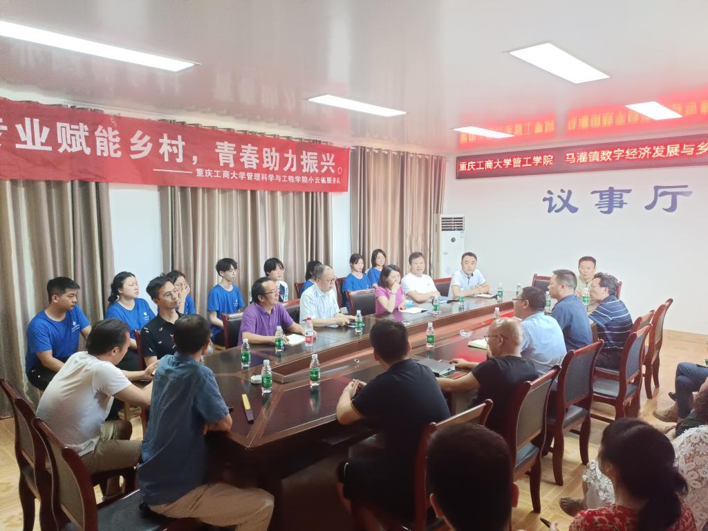 7月8日,小云雀服务队师生在忠县马灌镇果园村与当地领导干部座谈。校地双方围绕忠县马灌镇数字经济及乡村振兴发展现状、发展思路、现有问题和校地合作等方面进行研讨。