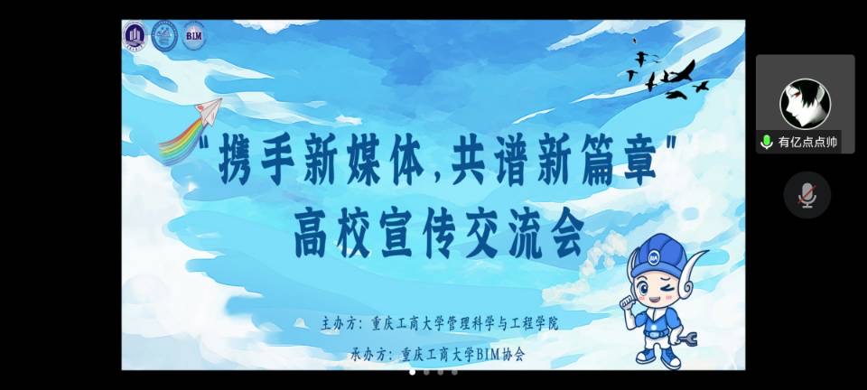2022年10月3日,由ok138cn太阳集团,太阳集团tyc9728,44118太阳成城集团主办,BIM协会承办的“携手新媒体,共谱新篇章”新媒体交流活动成功举办,参与本次交流会的宣传组织有西南政法大学新闻传播学院学生会宣传部、西南政法大学AI法学院学生会宣传部、重庆交通大学校团委宣传部、ok138cn太阳集团,太阳集团tyc9728,44118太阳成城集团学生会宣传部、太阳集团tyc9728BIM协会文宣工作室。太阳集团tyc9728工程管理系主任,BIM协会指导老师肖艳作为参会嘉宾出席本次会议。本次交流会由郭睿同学主持。