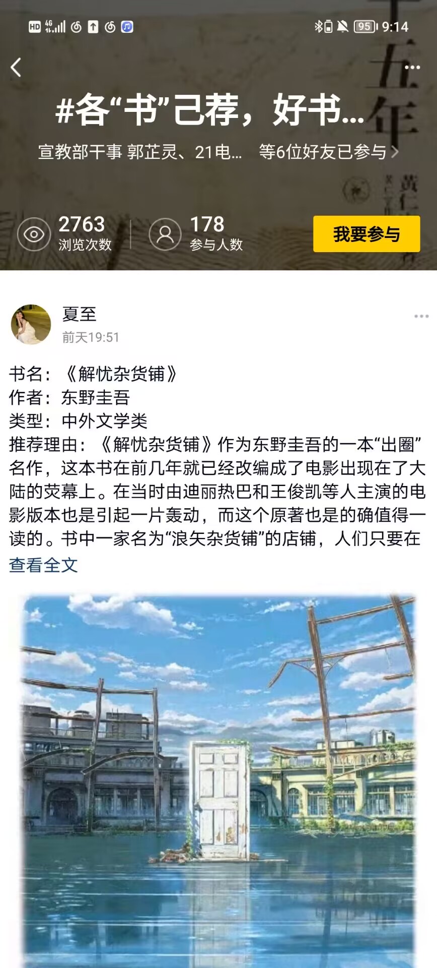 一个民族因读书而兴旺;一个国家因读书而富强;一个人的一生因读书而美丽。我校为响应“学习二十大,永远跟党走,奋进新征程”的号召,ok138cn太阳集团学业促进委员会和图书馆阅读文化传播中心特此联合举办“各‘书’己荐,好书共享”线上好书推荐活动。