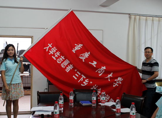 商务策划学院骆东奇院长结合自身经历讲述了青年学生参加社会实践的重要意义,对前往长寿的社会实践队伍提出严格要求和殷切希望,鼓励参加社会实践的大学生们不怕吃苦,全心投入,不懂就问,通过多种角度思考问题,写出高水平的调研报告,为长寿地区的发展做出贡献。学院党总支书记邓德敏强调了社会实践过程中的安全问题,同时对前往偏远山区支教表示钦佩和赞赏,并嘱托前往长寿开展工作的队伍应该不畏辛劳,切实开展各项工作。团委书记古纯玉强调“三下乡”的纪律并进一步安排了各项工作。学生代表李春凤发言指出,当代大学生是国家未来的希望,她号召大家走出校园、深入农村,开展社会调查、志愿服务、公益活动、服务和谐社会等实践活动。最后,邓德敏书记向两支大学生实践队伍授旗并合影留念。