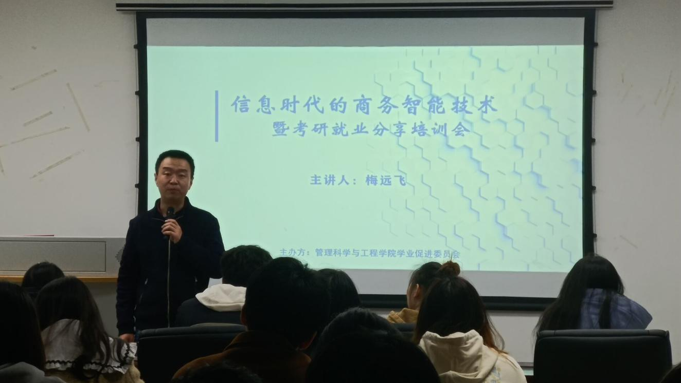 随着信息时代的发展,商务智能技术已经成为日常生活以及各专业领域的关键技术之一。为了更加了解商务智能技术,2023年3月26日下午,ok138cn太阳集团学业促进委员会在北十学生发展中心002会议室特此举办了信息时代的商务智能技术暨考研就业分享培训会。此次培训会也为考研的学子提供了较为明确的奋斗目标。