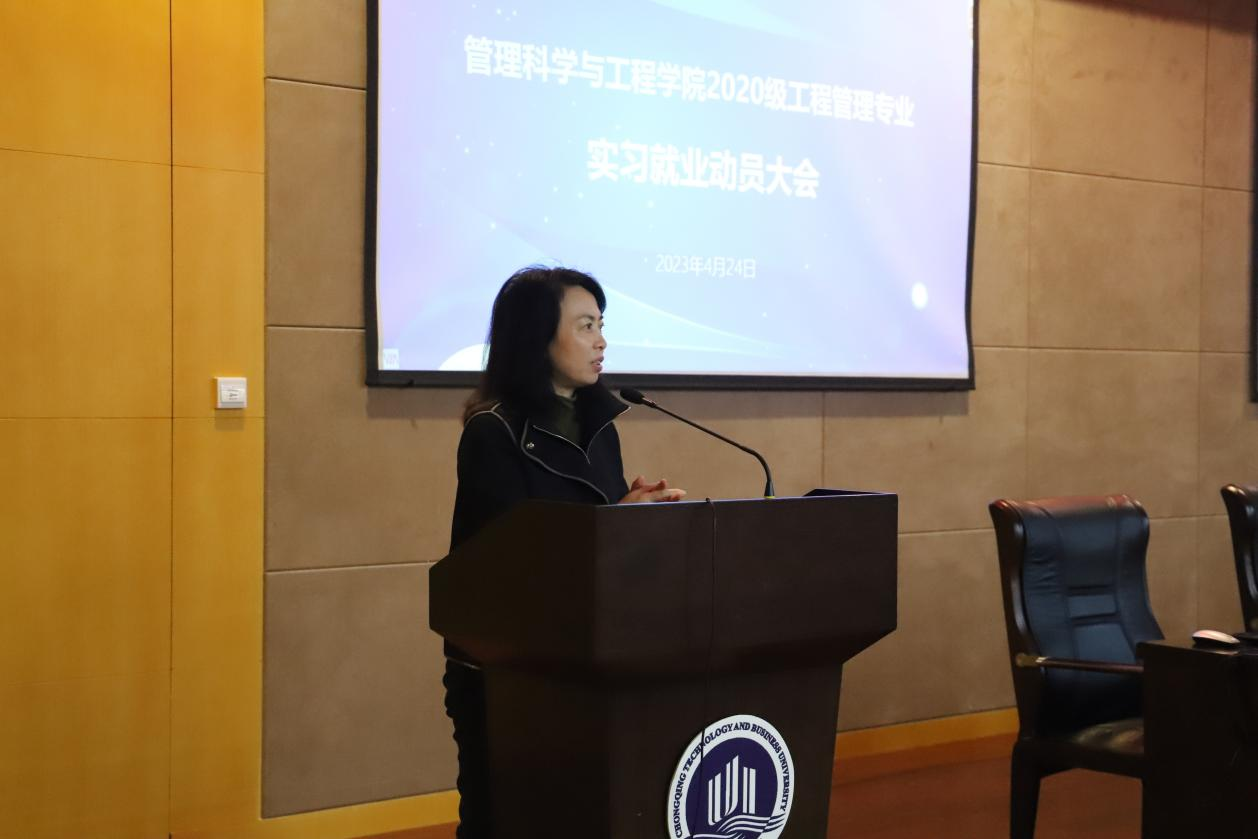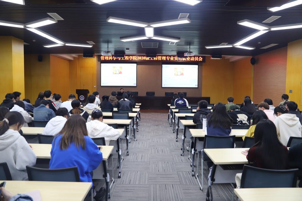 4月24日下午,ok138cn太阳集团在南岸校区新图书馆多功能厅召开2020级工程管理专业实习就业动员大会。工程管理系主任肖艳、副系主任梁桂保、专任教师老师梅中亚、郑传军博士、19级毕业生代表和20级全体同学参加了会议,会议由专职辅导员邓诗语主持。