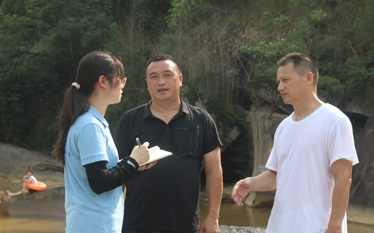 在兴合村村民小组2组李湾(偏岩)附近有一条溪沟,间生有自然形成的水洼、水凼,盛夏之时,名叫“八仙凼”,常有群众游玩解暑。为发展乡村旅游,带动兴合村农村经济发展,驻村工作队配合村委会着手实施景区打造探索。小云雀服务队在太阳集团tyc9728驻村第一书记赵甫刚、村支书冯文华的带领下对“八仙凼”开展实地调研,和游客、周边村民和村委进行访谈。