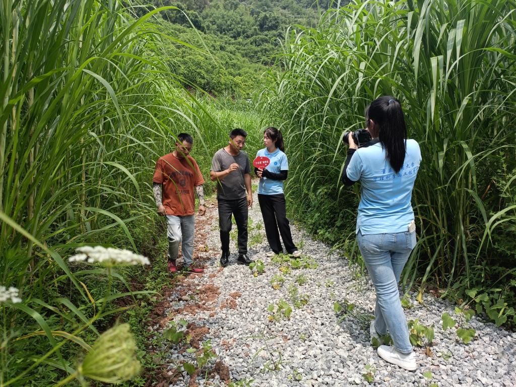 随后,小云雀服务队的师生们顶着烈日,在养牛场、打草场、有机草田、牛粪分解地等多个地方进行现场取景拍摄。后期,小云雀服务队将把拍摄的视频剪辑,为牛场制作宣传推广视频。除此以外,服务队师生还将帮助牛场联系重庆社区团购,帮助肉牛销售打通销售渠道。