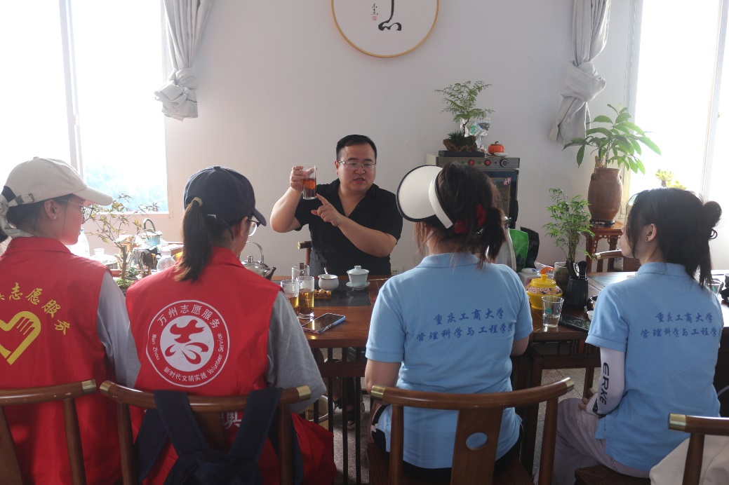 为增强大学生对乡村的了解,以专业知识带动乡村发展,2023年7月11日,ok138cn太阳集团,太阳集团tyc9728,44118太阳成城集团封海粟老师带领七名学生,组成“山野叙茶,电商助农”实践团前往万州区新乡镇,开展三下乡活动。11日下午4点,实践团对当地茶叶基地进行调研,茶叶基地负责人何先生从品茶、采茶、制茶三个方面向实践团介绍了茶叶种植基地的基本情况。