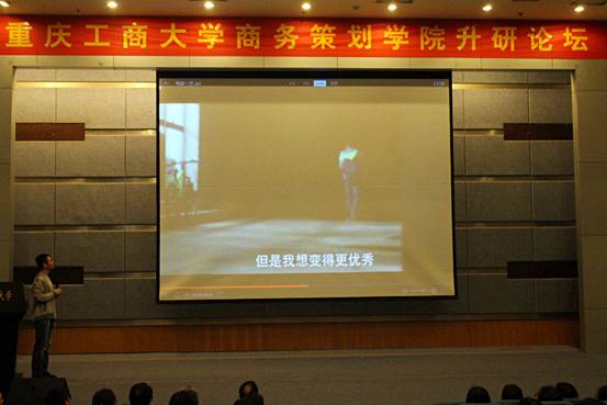 第二个给大家分享考研经验的是13级国际商务一班的高翔同学(以403分的成绩考入重庆大学的应用经济学专业)。他讲到,他能成功并不是他的智商比别人高,他只是做到了坚持两个字。