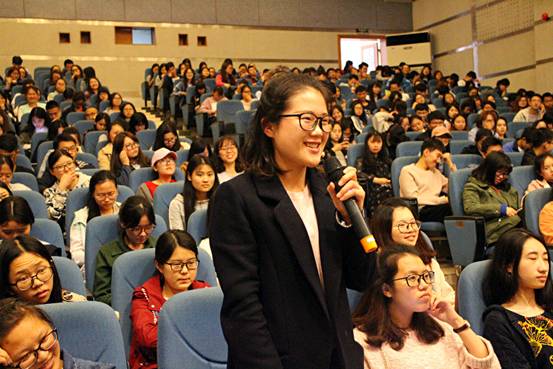 接下来主持人又向13级物流三班的张月秋同学(以417分考入中南大学管理科学与工程专业)提出“考研是一条孤独的路,如何在这条路上调整自己的心态一直走下去?”的问题。张秋月表示孤独可能是阻碍也可能给你动力,当你沉浸在学习中,全身心的投入其中时,你是感觉不到时间的流逝的,也就不会感到孤独。