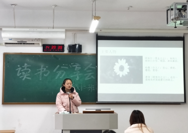黄文婷同学分享的是《撒哈拉的故事》,从三毛的生平开始引入主题,身处沙漠,中国脾气。黄同学用书中的各个小故事来体现三毛在沙漠中的这种惊心动魄,让同学们有身临其境之感。“生命的过程,无论是阳春白雪,青菜豆腐,我都得尝尝是什么滋味,才不枉来走这么一遭!”“没有变化的生活,就像织布机上的经纬,一匹一匹的岁月都织出来了,而花色确实一个样子的单调。”任何一点点生活上的享受,精神都会得到满足。所以,我们要活出自己,活出自己想要的生活,愿意为自己想过的生活去冒险,拼搏奋斗勇敢前行吧,年轻人们!