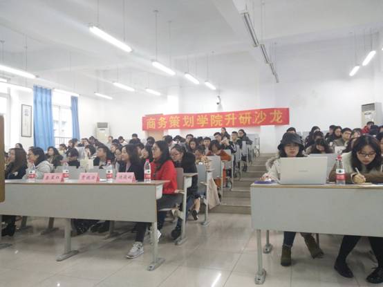 2018年11月27日10:20-11:50,针对2016级物流管理一、二班以及电子商务二班的第二十四期升研沙龙活动在博智楼307教室举办,出席本次沙龙的嘉宾有秦星红老师、方新老师、贾镜渝老师以及辅导员饶俊妮老师,另外还有幸请到了商务策划学院2017级技术经济与管理大数据方向研究生杨婷婷学姐、2018级技术经济与管理创新创业管理方向研究生吕安妮学姐。四位老师与两位研究生学姐利用一个半小时的时间,为同学们分享考研的经历经验,帮助他们明晰考研的方向,坚定考研的信念。