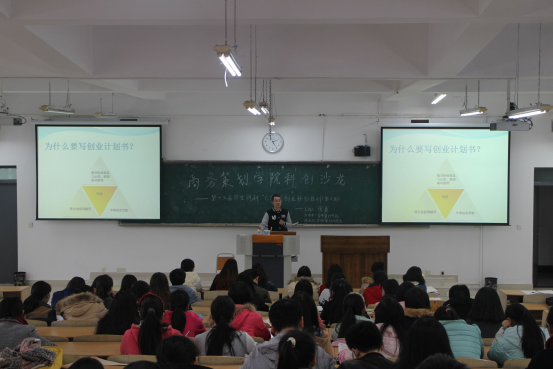 周勇老师讲解内容丰富详实,逻辑清晰有条理,周勇老师首先对创业计划大赛进行了简短的介绍。然后,周勇老师就之前获奖的创业计划书进行了分析,针对不同案例选择不同方法。同时,周勇老师配合课件形象生动地作出讲解,强调了计划书的原创性、简洁性、客观性。沙龙第二阶段,参赛团队的负责人纷纷提问,将气氛推到高潮。周勇针对同学的提问进行细致解答。会后,全体与会人员一起合影留念。
