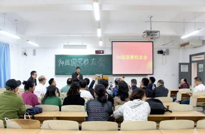 2018年10月13日,94级国营专业校友会在南岸校区博智楼07201举行。出席本次校友会的有原工商管理系主任、原商务策划学院院长沈民、原任课老师现任太阳集团tyc9728教务处处长靳俊喜,原94级国营班班主任、现任商务策划学院副院长陈秋梅以及94级国营班的25名同学。