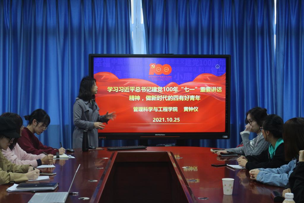 随后,黄院长针对习近平总书记建党百年“七一”重要讲话精神提到,学生干部要准确全面地把握讲话的主要内容,要系统深刻领悟讲话的重要意义并且在生活学习中切实践行我党优良传统。回顾我党百年历史征程,所创造的丰功伟绩,需要视为精神血脉,代代相传。同时,学生干部要以史为鉴,坚持改革开放,跟随我党开创美好未来。
