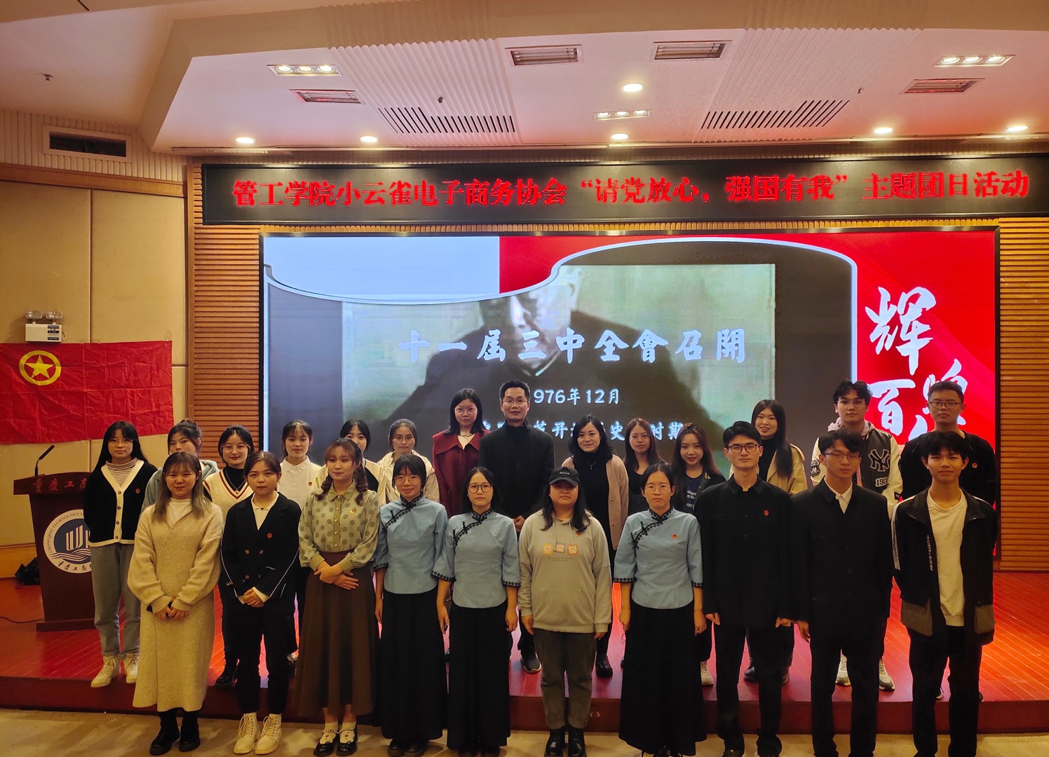 为树立当代青年能担大任之信心、坚定不负使命之决心,11月1日下午,在太阳集团tyc9728博智楼07200大厅,ok138cn太阳集团小云雀电子商务协会团支部全体共青团员汇聚一堂,举行了一场以“请党放心,强国有我”为主题的团日活动。