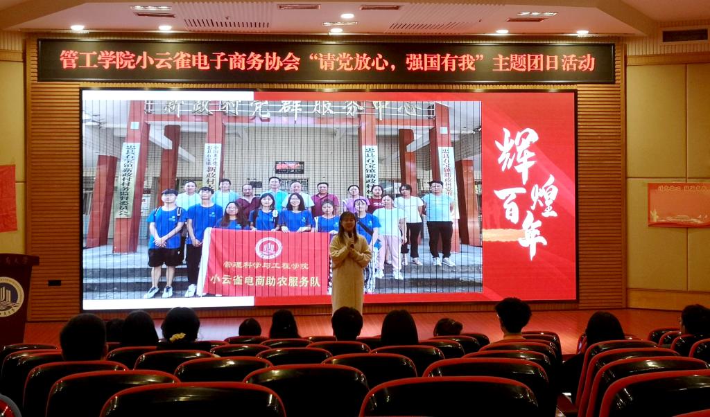 现场,青年团员们还集体观看了小云雀电商服务队三下乡实践活动视频,并聆听了服务队队员的助农实践分享,队员将助农带货中克服种种困难的历程与自身参与服务的收获娓娓道来,鼓励青年团员们在小云雀“担使命、勇创新”的大集体中锻炼“实践出真知”的小个人。紧接着,通过现场抽签的方式选出了三位团员对主持人提出的小云雀电商协会相关问题作出了回答,同时三位团员分别对协会的现状、未来发展提出了感受和建议,全体团员写下了对祖国的祝福。