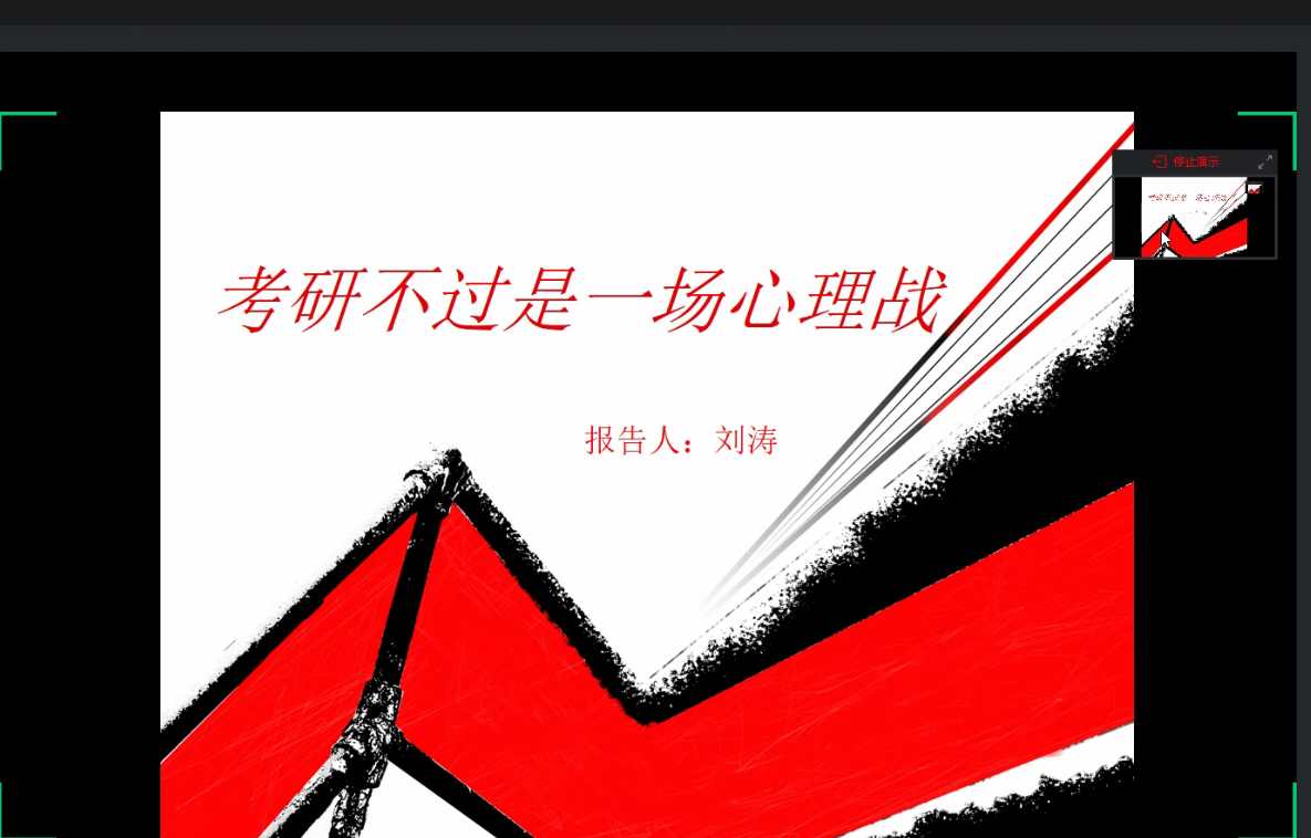 在邓老师向参与本次沙龙的学子,介绍升研活动和升研工作的情况之后,刘涛学长围绕“考研不过一场心理斗争”进行考研经验分享。刘涛学长就“要不要考研”这一问题展开论述,同时说明了数学及英语对于考研的影响。之后他分享了在考研路上的心得并点明了室友、研友及时间管理的重要性。最后学长讲到:“成功就是在你坚持不住的时候再坚持一下。”就学生问题“考研后期应怎样稳住心态”,刘涛学长表示,不要孤军奋战,调好生物钟,总会扛过去的。
