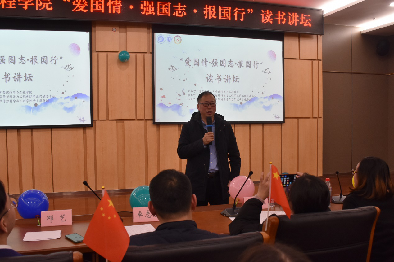 最后由学院邓德敏书记对本次活动进行了总结。他对于每位参赛选手对本次活动所做的努力给予了肯定,并鼓励更多管工学子,多读书、读好书,积极参与到学院的读书讲坛活动中来。邓书记引用“读史,使人明智;读诗,使人明秀;数学,使人精密;科学,让人深刻;伦理,让人庄重”来诚恳地告诫同学们要多读书,广读书,不断地学习。邓书记指出,想要读好一本书,第一是“志”:读书有志向;第二是要有“识”;从初衷来识;第三是“恒”;只要有了恒心,就没有不成功的事。他希望在下次活动中能看到男同学的身影,“红花”与“绿叶”能够均衡相配。