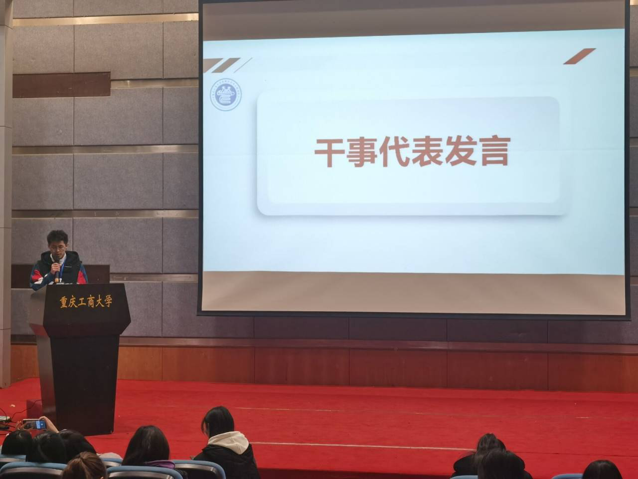 总结大会开始,各个部门的负责人代表对过去一学期的工作进行总结,以及对部门内部的工作问题进行反思,并且表示,会在以后的工作过程中查漏补缺,完善制度,负责人们还对未来的发展作出了规划。他们的汇报使得所有干事对各部门的工作有了进一步的了解,对日后工作的开展有了一定的认识及规划,他们也对干事们如何提升自我综合能力表示了关怀与期望。