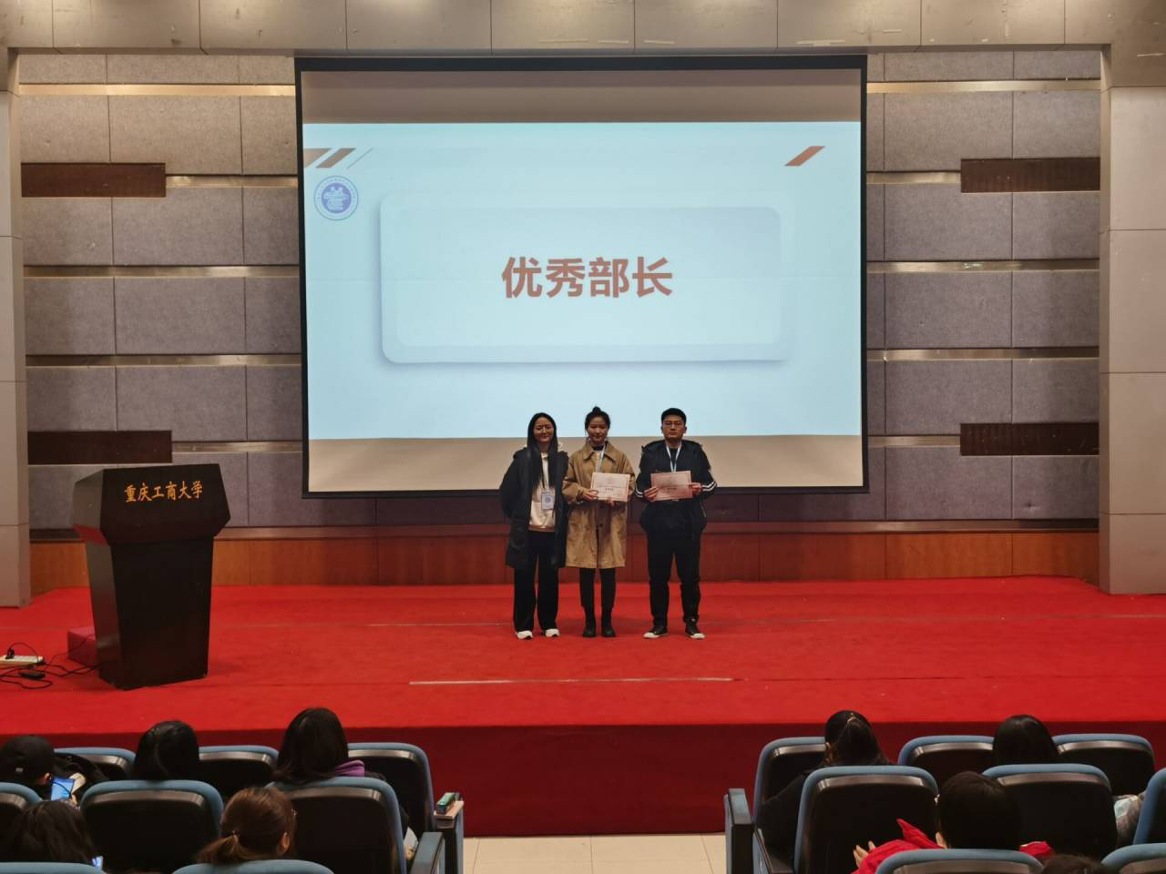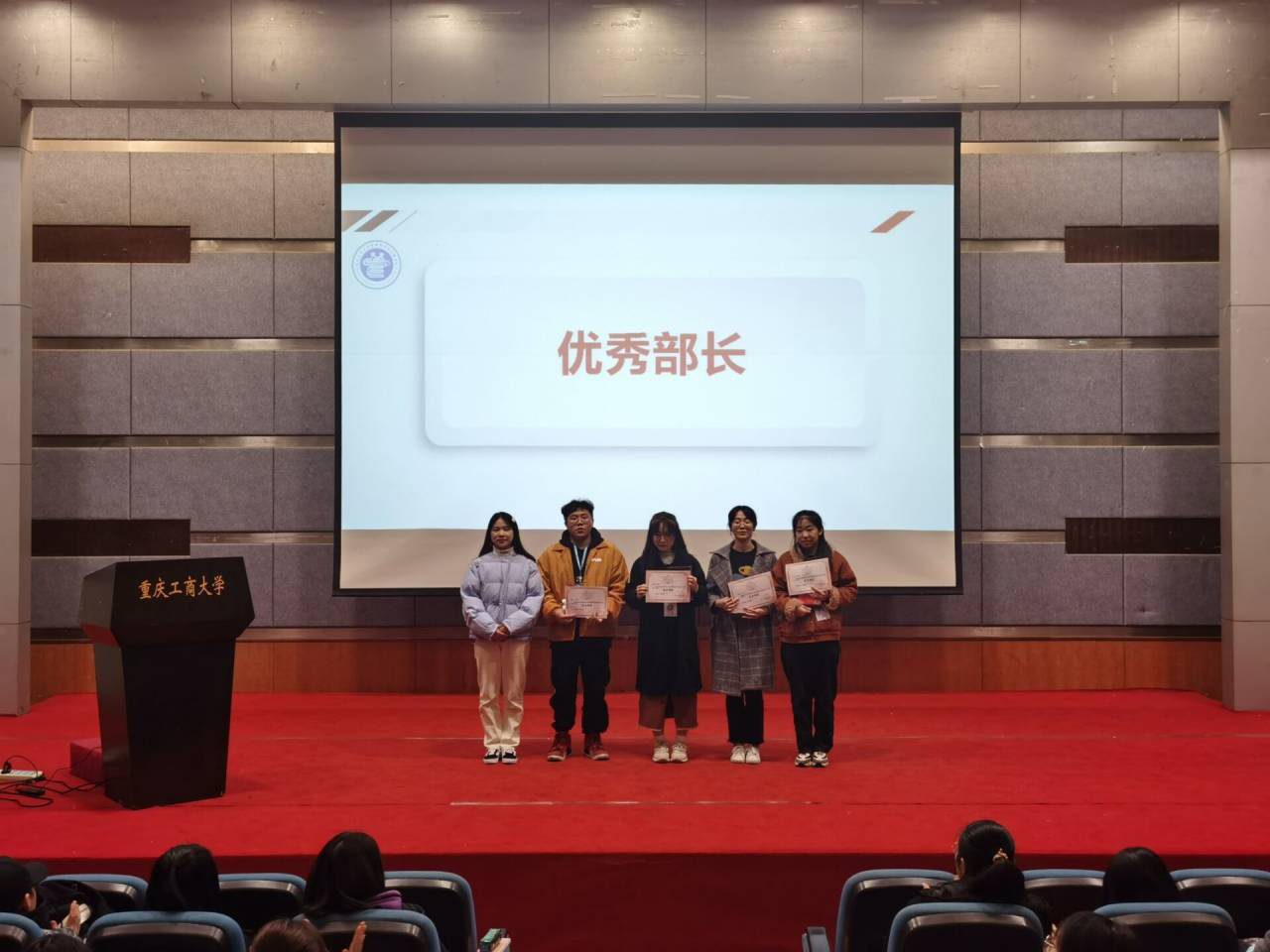 最后,大会对优秀部门、优秀部长和优秀干事进行表彰并发放奖品。此次表彰是对他们工作的肯定,并希望其余同学都能向这些同学看齐,在分团委学生会里面都能有所收获,见贤思齐,砥砺自新,共同建设一个更为优秀的大家庭。