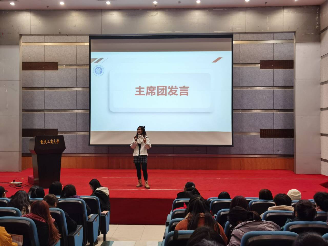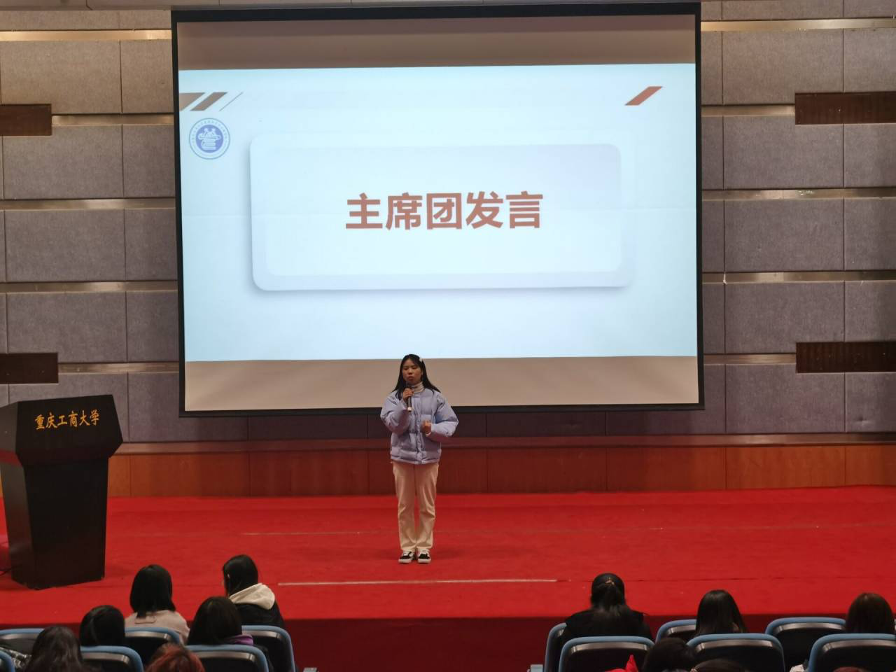 干事发言结束后,分团委副书记以及主席团成员讲话。分团委副书记高傲怡对分团委学生会过去一学期的工作进行了总结,并且对各个部门的工作给予了肯定与赞扬。随后,高傲怡、陈霞、周允虹和黄楷然三依次上台发言,对分团委学生会的工作进行总结和展望,希望分团委学生会越来越好,大家都能有所收获。