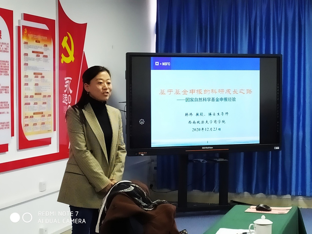 为更好助力老师们申报2021国家自然科学基金项目,ok138cn太阳集团特邀西南政法大学商学院院长、博士生导师、国家自科基金重点项目获得者韩炜教授于2020年12月24日上午在学院80709会议室举行了国家自然科学基金申报经验分享会,来自ok138cn太阳集团、国合基地、数学与统计学院等共计40余师生参加了分享会。