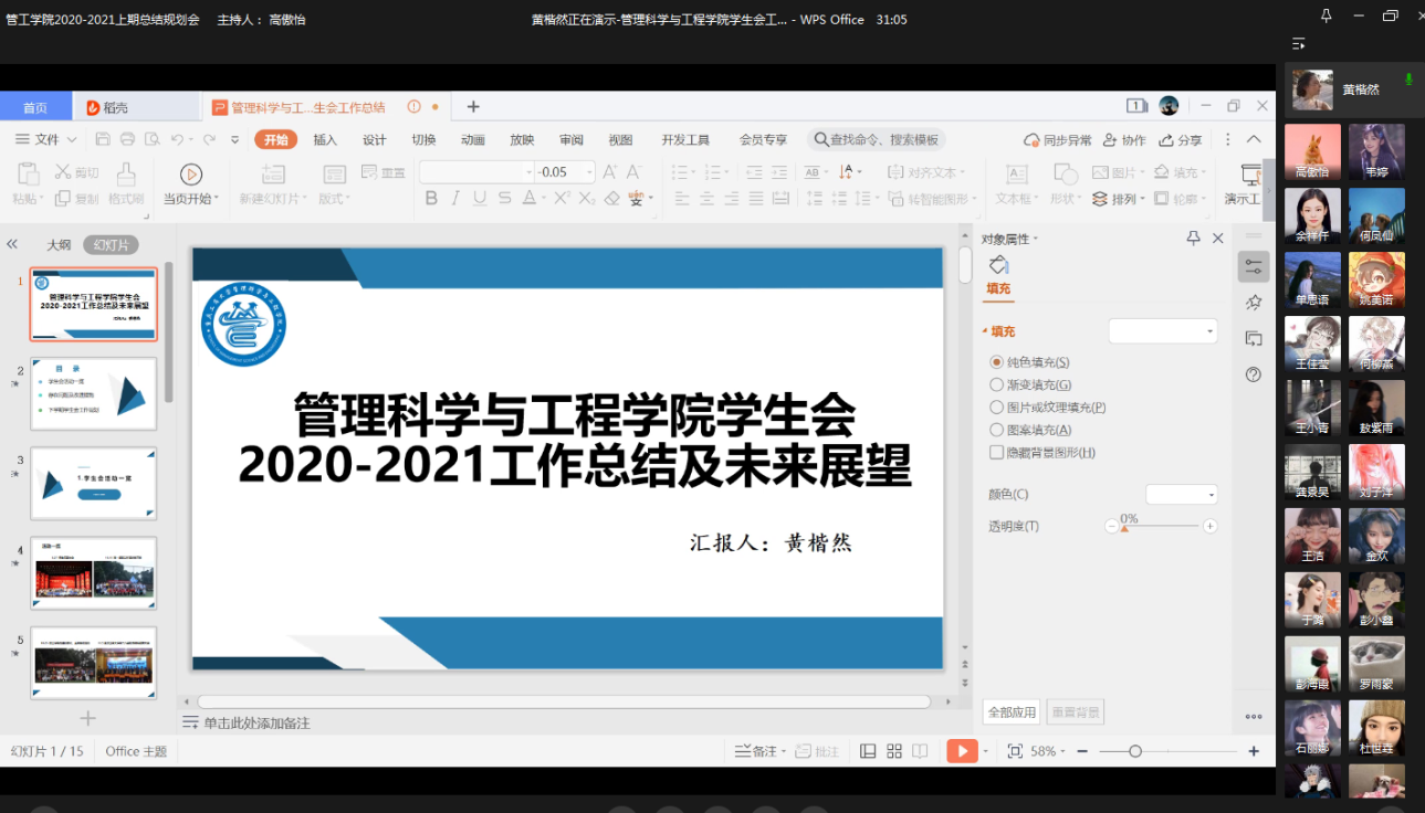 本次会议促进学院各学生组织干部总结思考,收集了同学们的意见和建议,有利于学院进一步做好十四五团学工作!