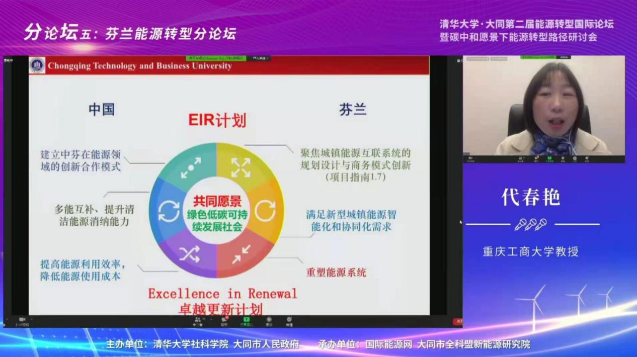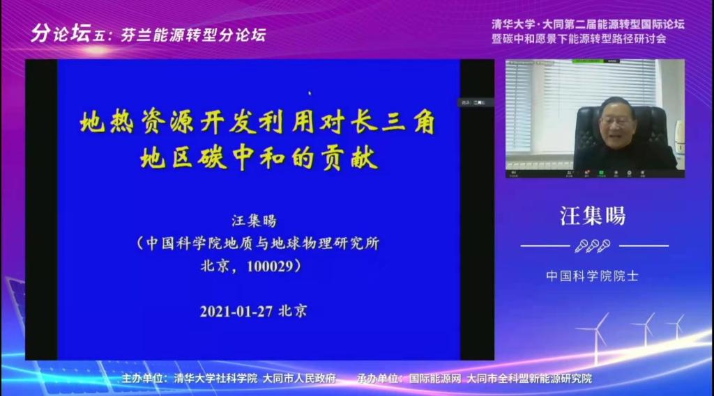 本场分论坛通过在山西大同能源馆设主会场以及线上直播的方式举行,参与本次论坛的特邀嘉宾有中国科学院院士,地热专家和水文地质学家汪集暘、埃斯波市董事会主席Markku Markkula、芬兰商务部上海办事处主任Mika Klemettinen 、科技部中国科学技术交流中心项目官员夏欢欢。同时,EIR项目的合作伙伴:芬兰Fortum公司城市解决方案公司增长主管Kalle-Erkki Penttila 、芬兰Fortum eNext公司负责人Kari Lathi、芬兰Planora公司首席执行官Esa Teppo、世界低碳城市联盟副秘书长Jussi Hulkkone、国网能源研究院电网发展综合研究所所长韩新阳、国网天津电科院电网中心副主任姚程、北京国经中联国际合作中心项目总监朱室光、中国-北欧绿色可持续发展促进会(SNPA)国际合作中心项目总监王婵、启迪清洁能源常务副总裁李旭光、芬兰技术研究中心成员清华大学博士黄江懿在论坛上做了报告。参与大会的还有从互联网上接入的3.45万名观众。论坛由国家重点研发计划中芬EIR项目负责人,太阳集团tyc9728教授代春艳、清华大学社科学院能源转型与社会发展研究中心常务副主任何继江、西纳可(Synocus)公司董事长Johan Wallin共同主持。