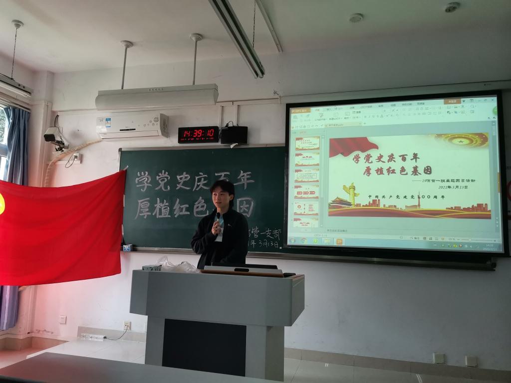 各团支部通过党史故事宣讲、党史书籍分享、演讲等丰富多彩的形式在支部掀起党史学习的热潮。在团日活动中,青年大学生声情并茂地讲述党史中的一个个英雄人物的璀璨故事。他们中有革命年代的董存瑞、邱少云等革命先烈;有建设年代的焦裕禄、王进喜等时代楷模;也有二十一世纪的钟南山、袁隆平等新时代的英雄。英雄人物的故事使同学们不禁潸然泪下,深受触动。在读书分享中,团员们积极分享自己的学习体会,如《共产党宣言》、《苦难与辉煌》、《中国共产党史简史》等经典书目,在团员们生动的讲述下,在场的所有同学都沉浸于其中,回味书中经典。